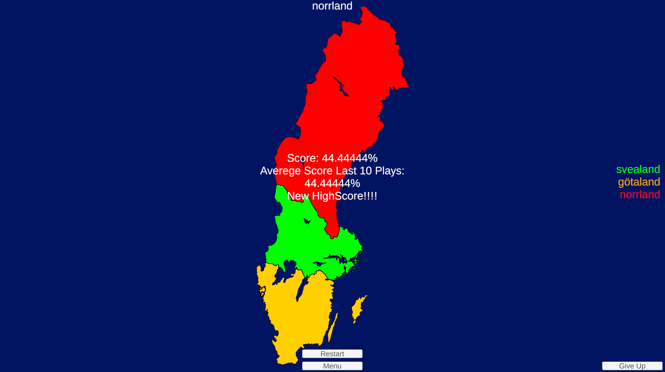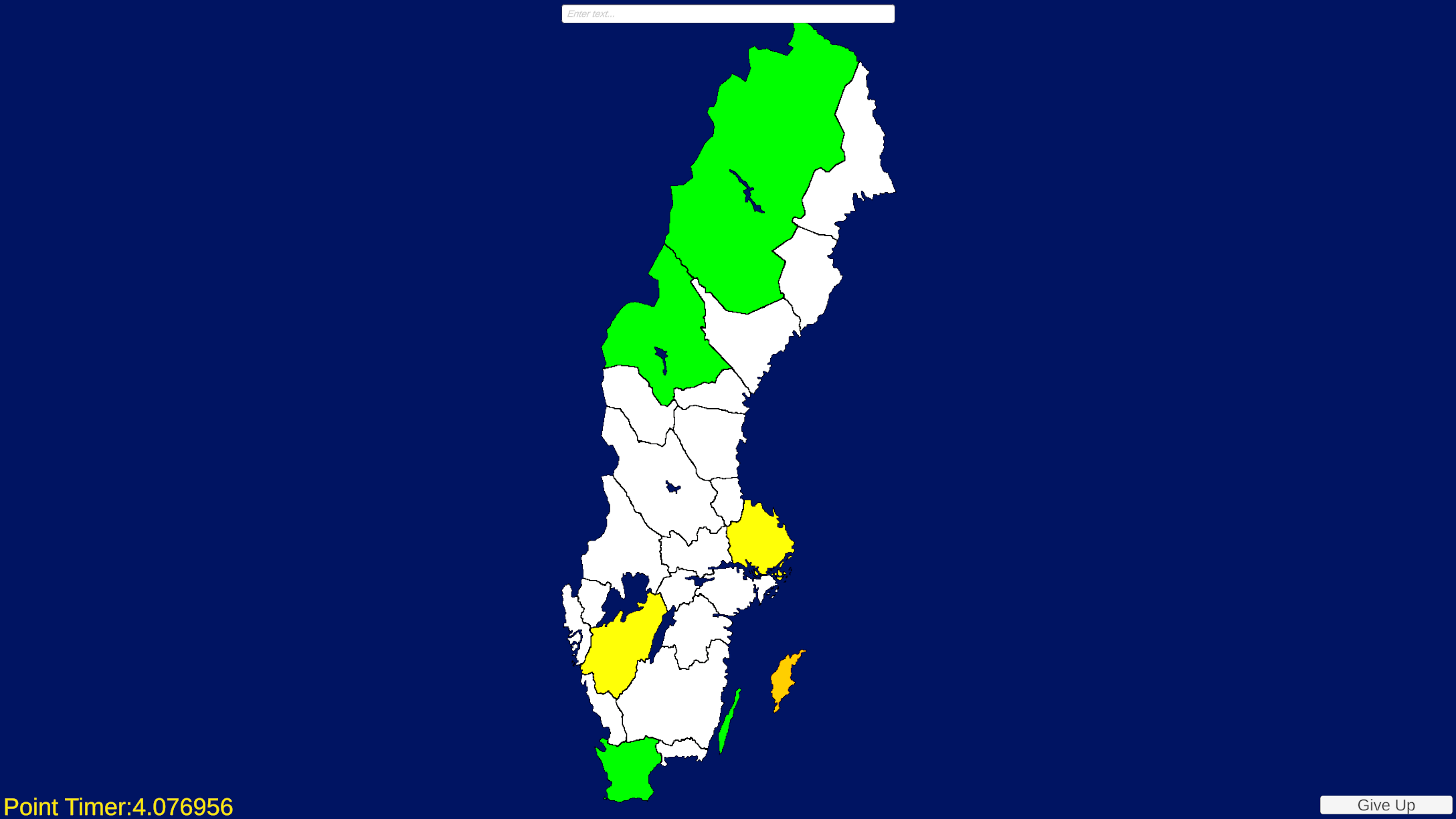 Level 4: You have to write all subdivision names in your own order and click on the map where they are, if you take more than 10 seconds you get 1 point, if you got 5 seconds left you get 2 points, else you get 3, first guess you get 15 seconds on you and if you click wrong you get taken down 1 point step and if you got 0 seconds left and click wrong that subdivision gets marked as wrong/0 points